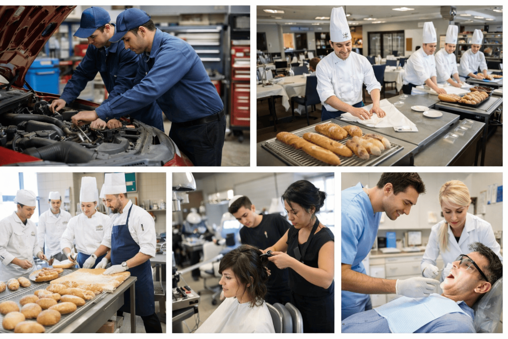 學校提供超過百種專業課程,涵蓋健康照護、商業管理、資訊科技、餐飲廚藝、設計媒體及技術工程等多元領域,課程類型以1至2年的技職文憑與證書為主,著重培養學生的專業技能與職場能力。