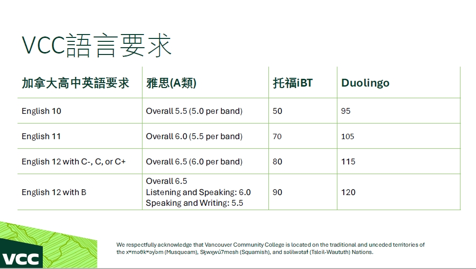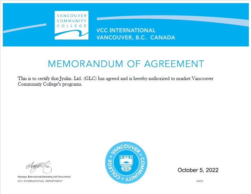 在學校認證方面,VCC為加拿大政府認可的公立學院,同時也是指定學習機構(DLI),並取得卑詩省教育品質認證(EQA)。此外,學校亦為加拿大公立學院聯盟(Colleges and Institutes Canada)成員,代表其教學品質與制度符合國家標準。